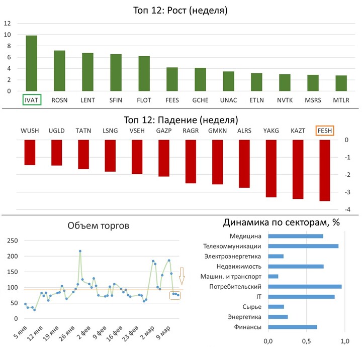 В понедельник нефть поднялась выше $110, что привело к открытию индекса ММВБ с гэпом выше 2900. Однако уже к обеду все «достижения» были растеряны. Со среды, несмотря на восстановление нефти, акции перестали так бодро на нее реагировать, а объемы торгов упали. В итоге индекс закрылся небольшим ростом на 0,6%, что выглядит довольно скромно на фоне роста нефти выше ...