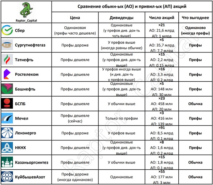📌 Многие инвесторы привыкли покупать обыкновенные акции компаний, хотя привилегированные иногда более выгодны. Сравнил два типа акций у некоторых компаний.